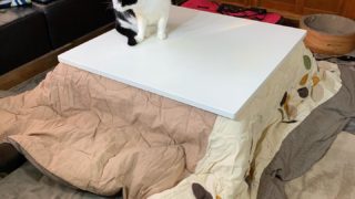 コタツを出してみた。 何年ぶりだろう、、、 アビィ君もこれが何か忘れているようで、天板に乗ってみているところ #コタツ #冬支度
