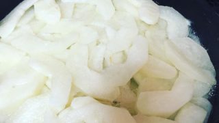 梨3つと半分、キャラメリゼ作成中 そのまま食べても、美味しい梨に、手間を加えて、ケーキの材料にします #梨 #梨のキャラメリゼ