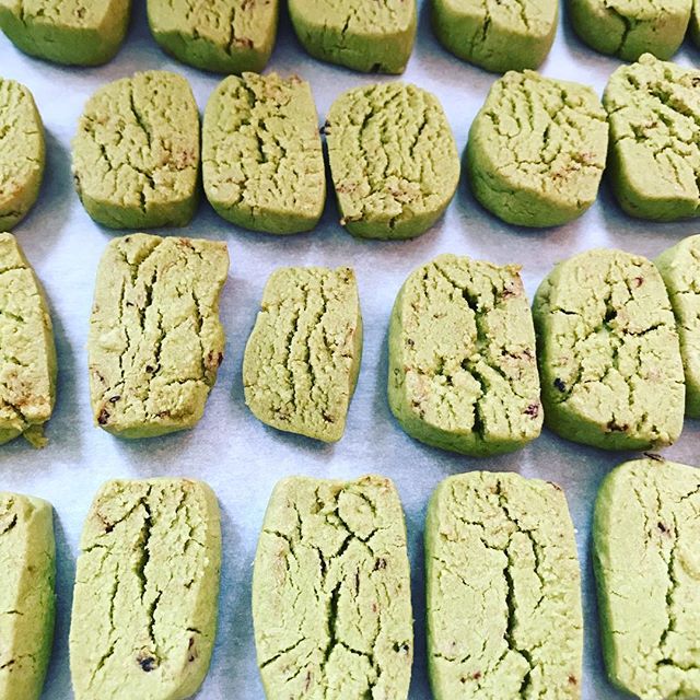 1枚目は、今満開で、いい香りが漂う家の隣のサクランボの木。この香りに誘われて今日のお菓子は、ご門徒さんに頂いてストックしている桜の梅酢漬けを刻んで練り込んだ、グリーンティーのクッキーです。