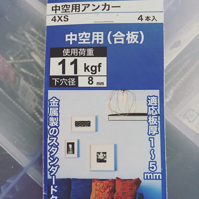 取付けるために、中空用アンカーを使用してみました。合板の壁だけど人が乗らなければ、問題無しです。