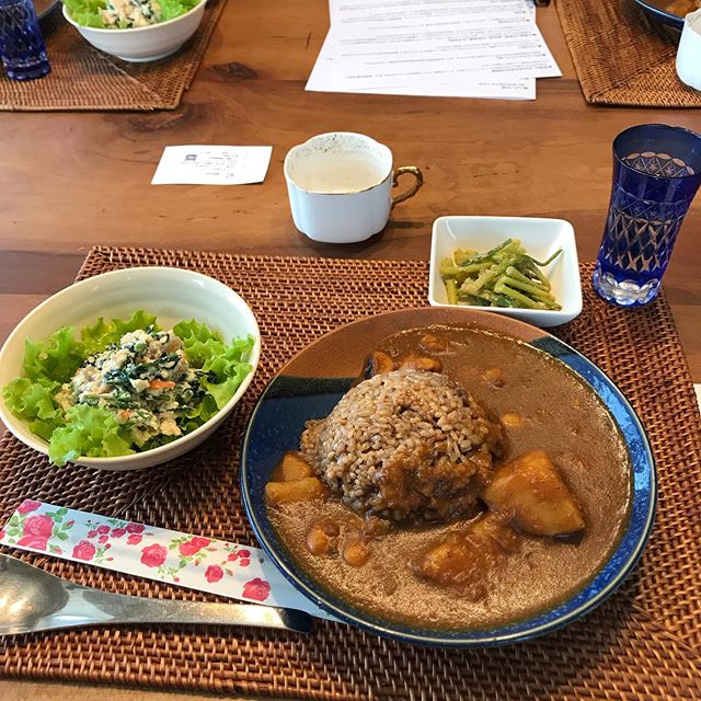 ランチは、Y’s Cooking Liveの吉水先生のマクロビ料理をいただきながらの腸活セミナー発芽玄米にカレー、白和え、ニンニクの芽のごま和え。美味しくて、見た目以上にボリュームもありました。
