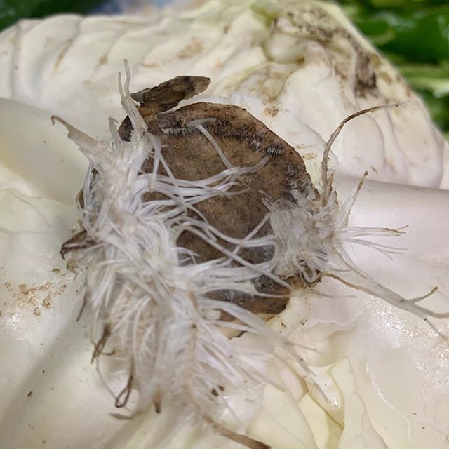 採れたての新鮮なキャベツを貰ったのだけれど、貰ったのは、1週間ほど前で、使わず貰った袋のまま、キッチンの床に置いてあった。傷む前に使わないとと、取り出したら根が伸び始めていた。外側の変色した葉をとったら、水々しい葉で、柔らかい。やっぱり貰う採れたて野菜は元気だ(^^)