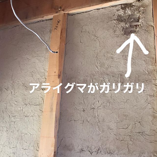 今まであったトイレ設備や壁を取り除いたら改修工事直前まで屋根裏を歩いていたアライグマが穴を掘ろうとしていた跡も見えたり。