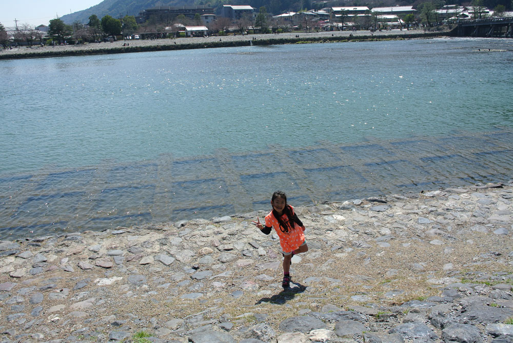 桂川の水面が、エメラルドグリーンに染まって、綺麗でした。