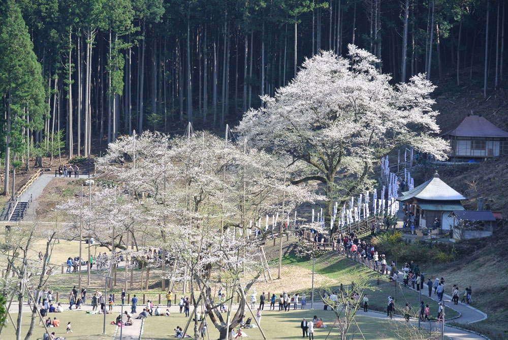 進んだ先は、キャンプ場の中の高台で、すごく見晴らしが良く、淡墨桜(うすずみざくら)を上から、全貌をカメラに収めることができました。