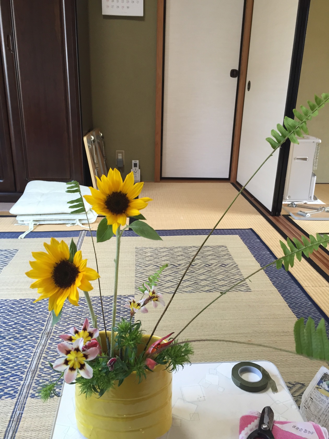 昨日の、生け花は、自由花