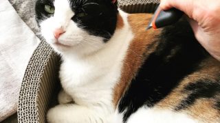 家の中はヌクヌク。お手入れが気持ち良くて、眠くて、すっぽり収まるメイちゃん。それをチラチラ見ていたアビィくん、目を離した隙に入れ替わる #爪とぎ #ブラッシング #ひるねこ部